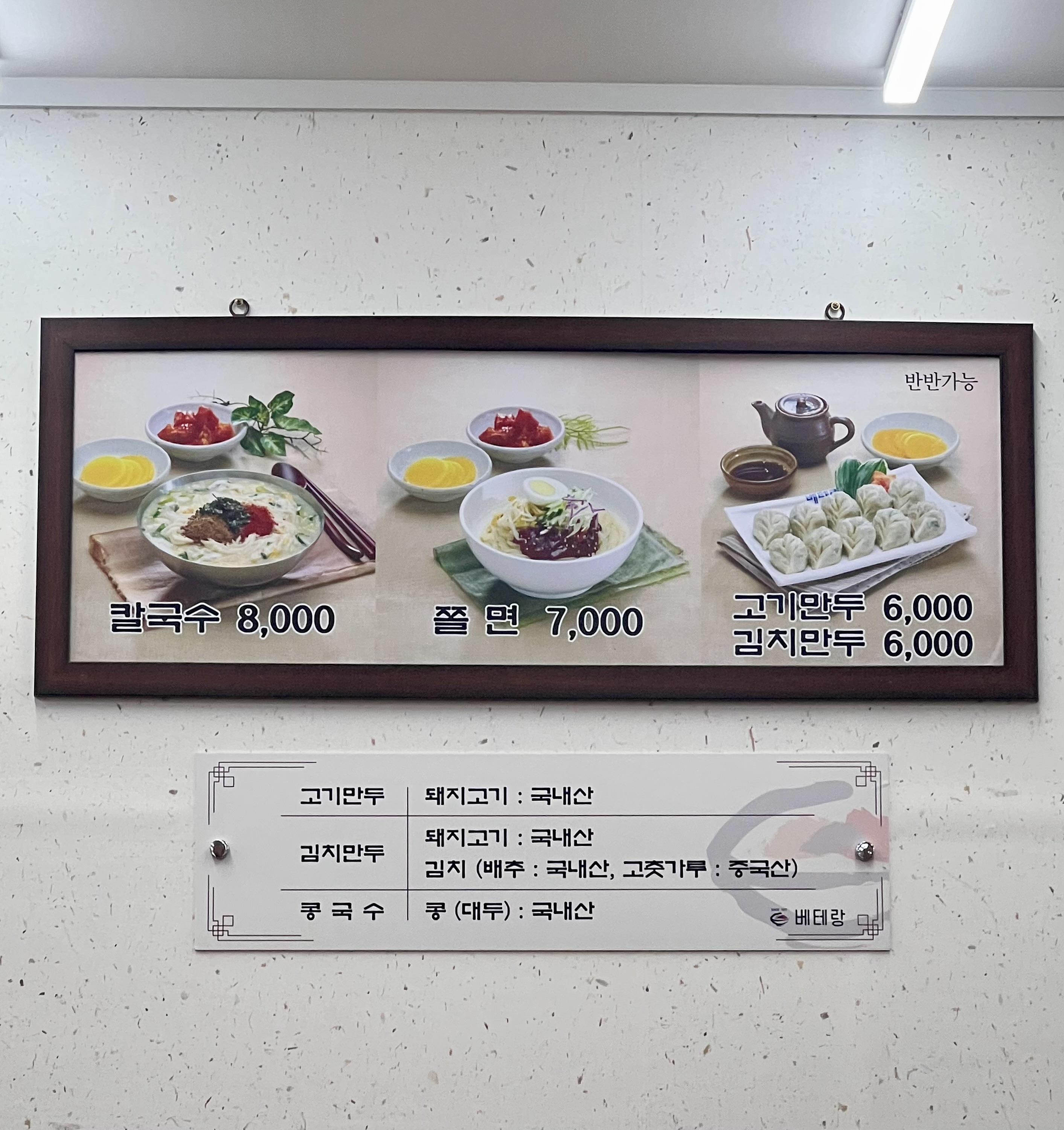 베테랑 칼국수의 메뉴판이예요.