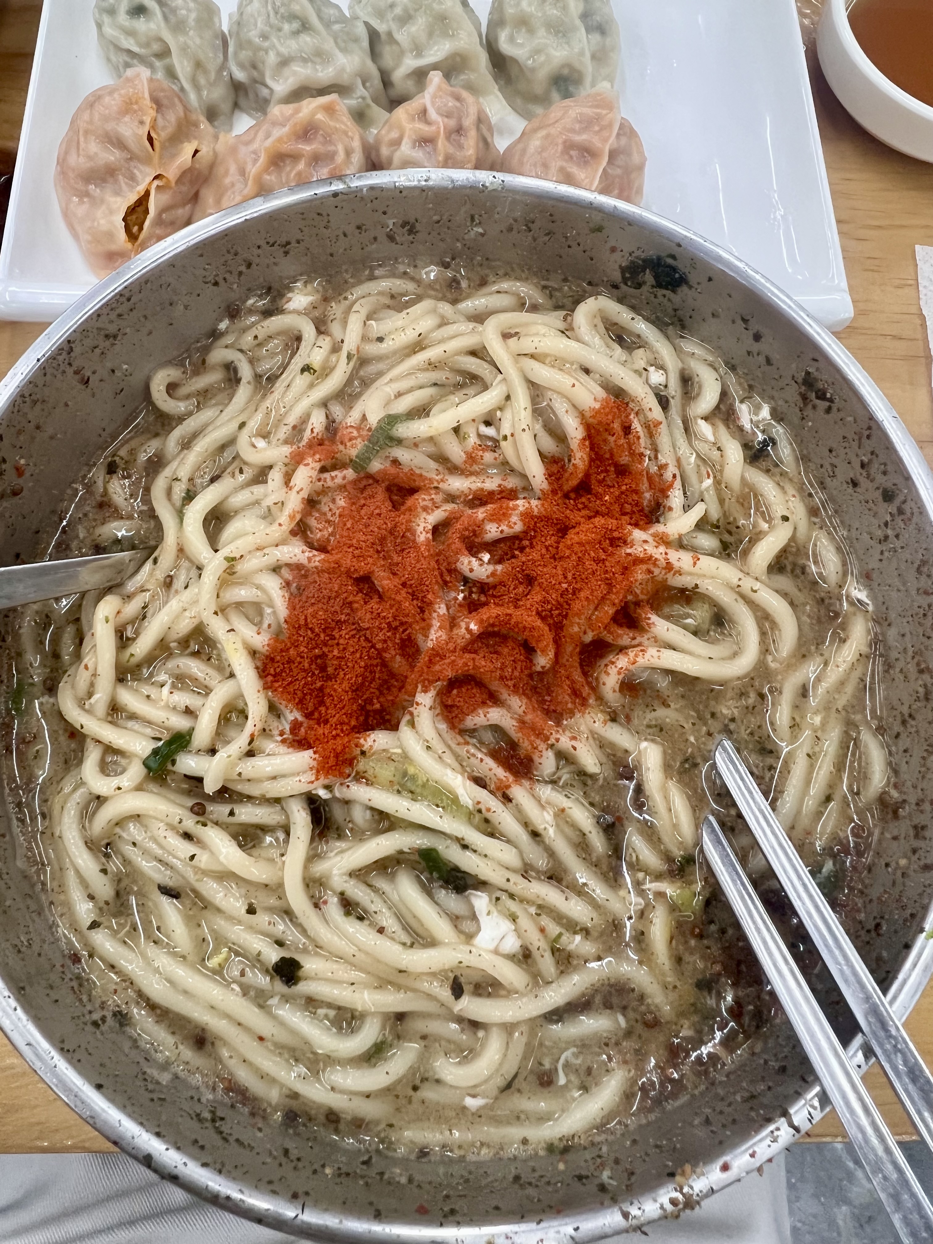 저희는 칼국수 2개와 만두반반을 주문했어요.