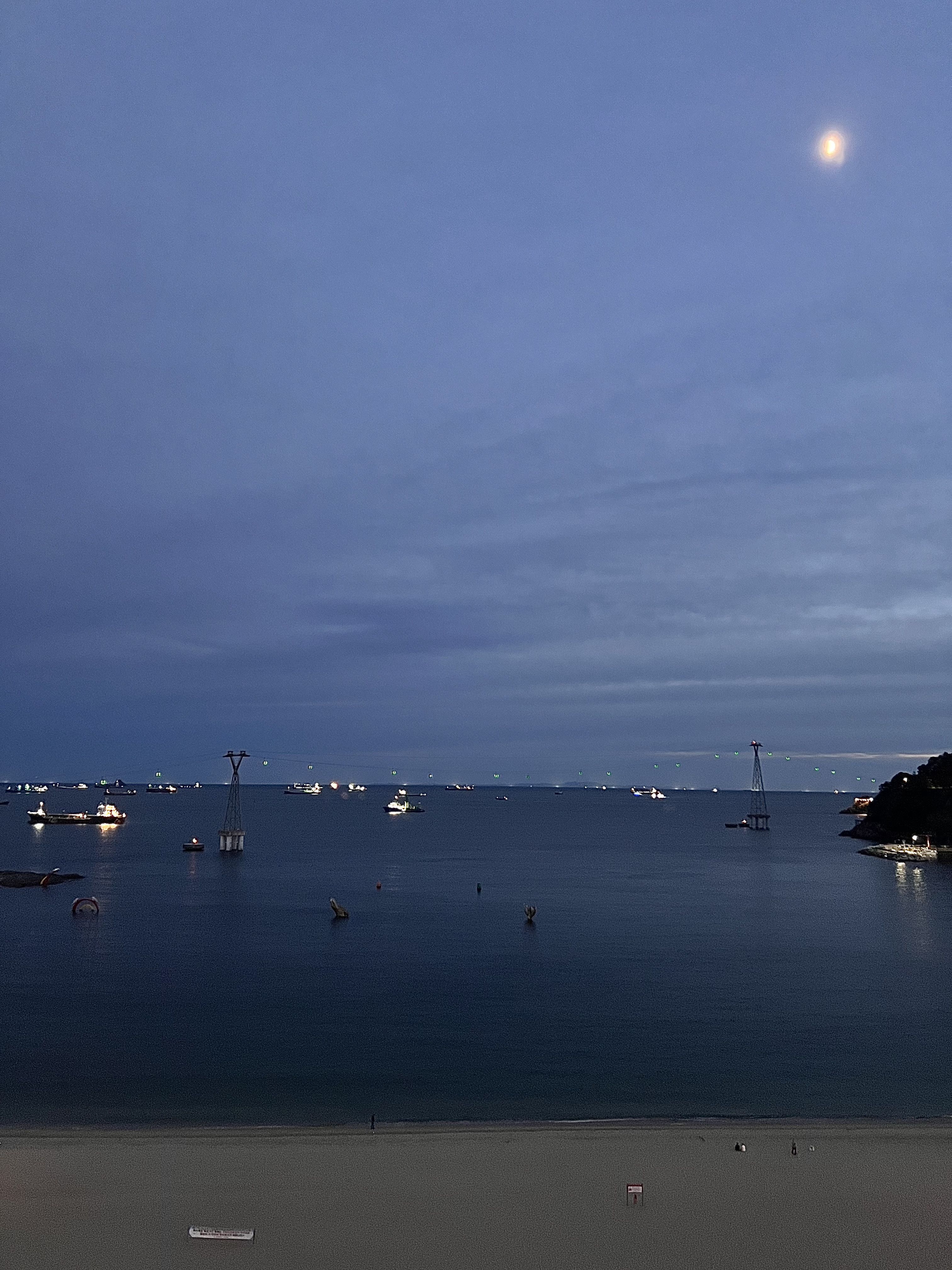 해가 지면 해수욕장에 불이 들어와서 송도 밤바다가 더 분위기있어집니다:)