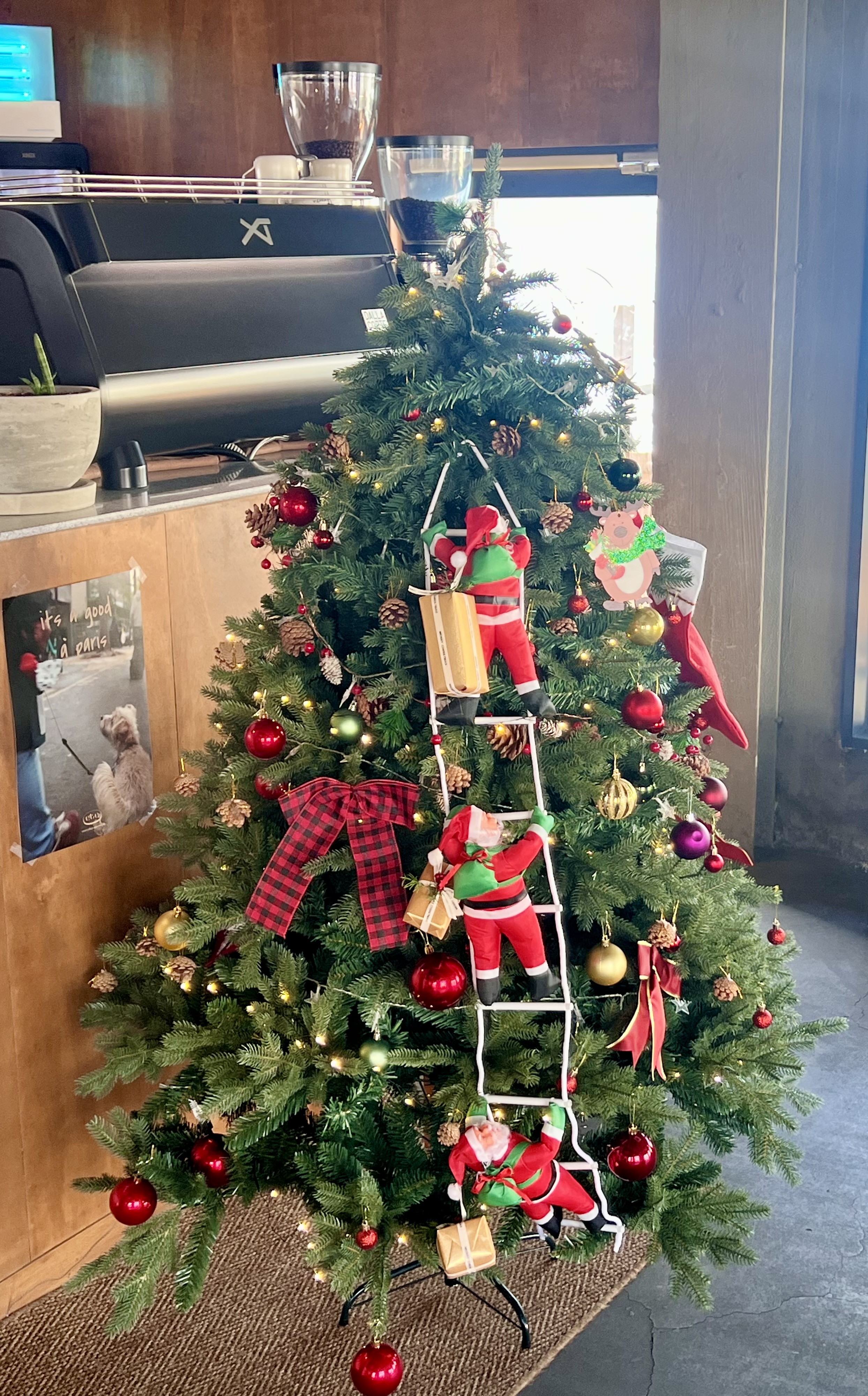 헤빙모먼트 카페 안으로 들어가면 예쁜 트리와 메뉴판과 디저트가 진열되어있습니다.